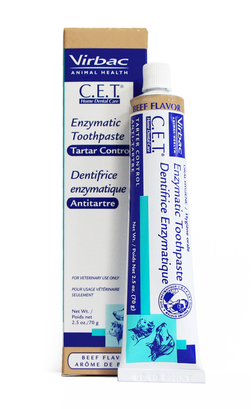 Dual-Enzyme System toothpaste formulated for dogs and cats to provide natural antibacterial action and to inhibit the formation of plaque.